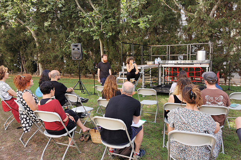 La nostra relació amb els microorganismes és constant i íntima. Sense ser-ne conscients, cada dia alimentem, transportem i compartim el nostre cos amb milions de bacteris i fongs que no veiem a simple vista. Mentre preparàvem aquesta peça vam descobrir que, curiosament, l’intercanvi de microorganismes forma part de molts rituals religiosos. Per això, El pensament salvatge és un ritual destinat a nodrir i fer créixer els microorganismes que portem aferrats a la pell. El ritual dura diversos dies, i comença amb una cerimònia d’inoculació, una trobada lúdica i festiva on companyia i espectadores es reuneixen al voltant d’una placa de cultiu de dos metres de diàmetre per preparar el seu aliment, mentre conversen sobre la relació entre microorganismes, esperits i deixalles. Durant tres o quatre dies, la placa es converteix en una instal·lació, on el creixement lentament es fa visible i audible. Finalment, ens reunim de nou al voltant de la placa per fer-hi una intervenció sonora amb percussió i música electrònica, al mateix temps que hi observem els paisatges que s’hi han generat. Les geografies creades pels microorganismes ens confronten amb una imatge desconeguda del nostre cos i del lloc que ocupem a l’univers.